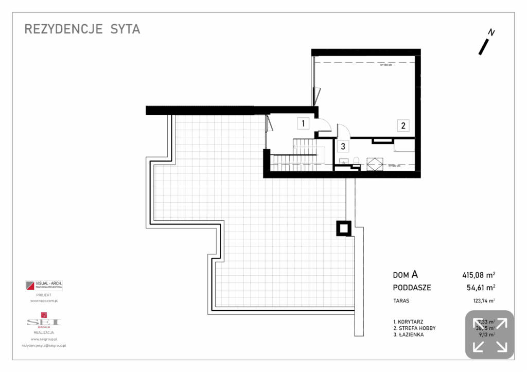 (176,83 m²): sypialnia główna z dużą garderobą i łazienką, 3 dodatkowe sypialnie, pokój kąpielowy, pralnia, taras 15 m²